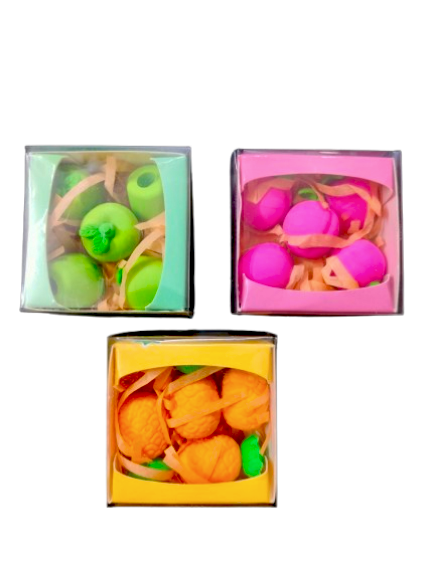 Each fruit eraser is crafted with detail and packed in a color-coordinated box, making it a delightful and ready-to-gift item. Whether you’re a parent, teacher, or gift shop owner, these charming erasers are sure to brighten anyone’s day!