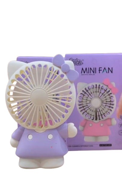 Kitty Design Mini Handheld Fan | Rechargeable Cute Portable Fan for Kids, Desk & Travel | Silent Strong Airflow (Random Color)